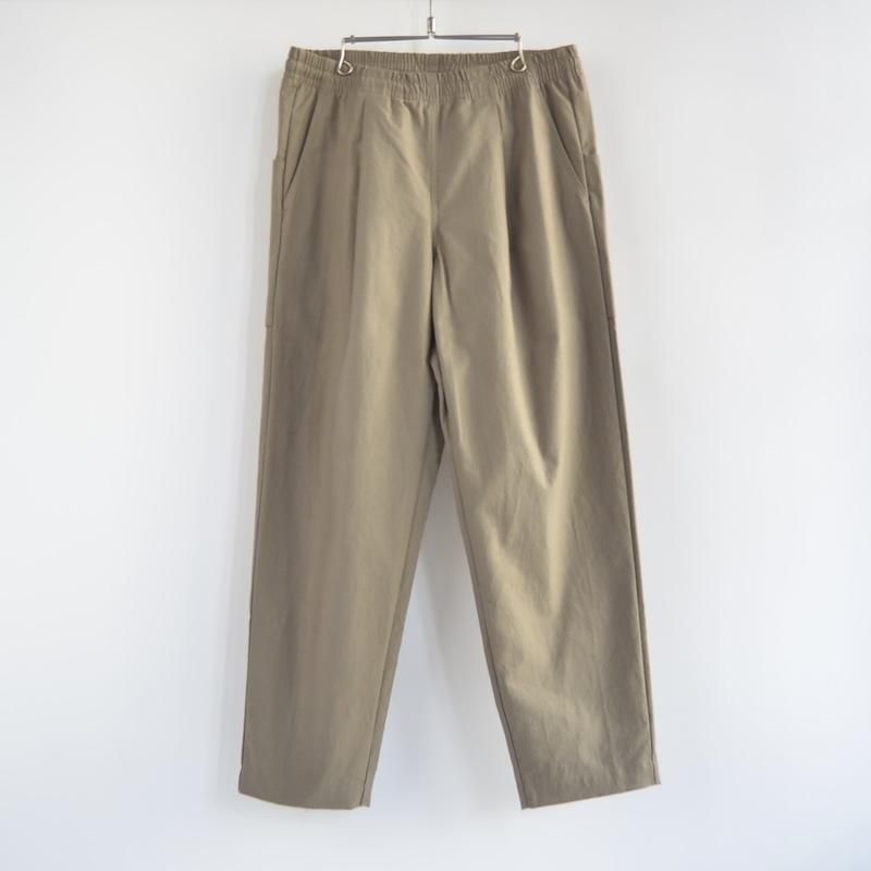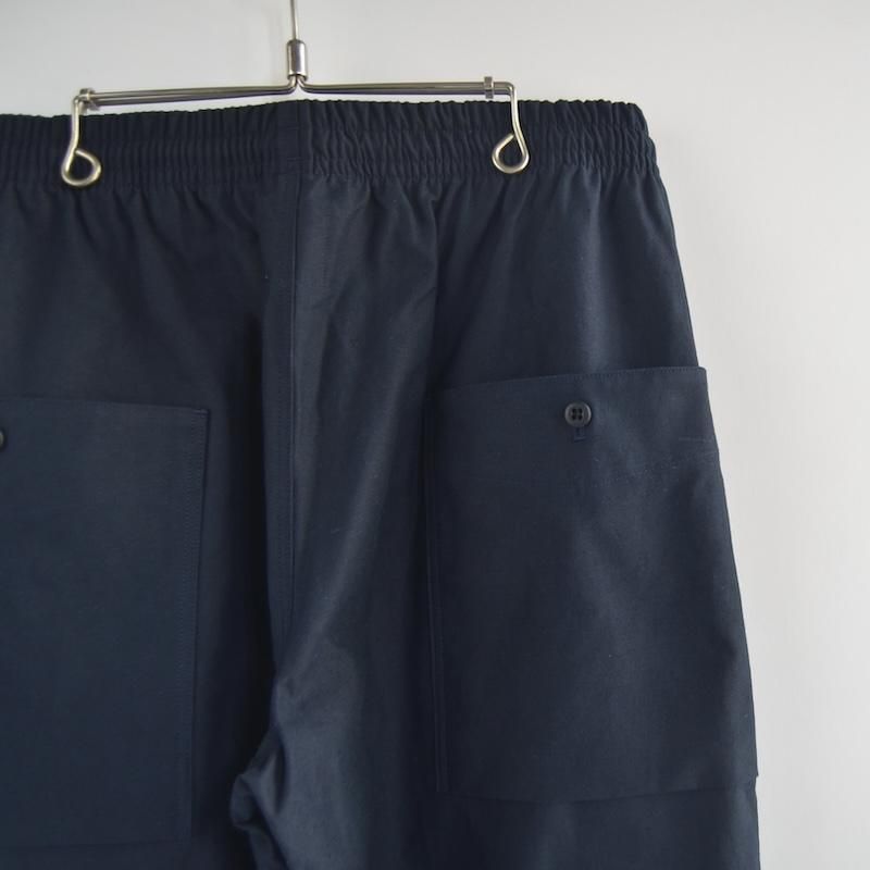 乾燥感のあるアメリカ、オーストラリアの混合綿を使用、その原綿をカーディングする際、機械の調整でネップを作り、表情としてネップを残しながら糸に強度を加えることができるレピア織機で織り上げることで生地自体の強度を高めました。デザインはBaseballの球審の腰回りのシルエットを参考にスペアボールを入れていたうような大きめのマチ付きポケットを配しました。裾にかけて強めのテーパーですっきり見える設計です。ウエストはゴムとコードで調節が可能です。前モデルJM4150と同設計ですが素材に強度が出て若干厚くなりましたので早い時期から着用できるアンプスパンツです。
