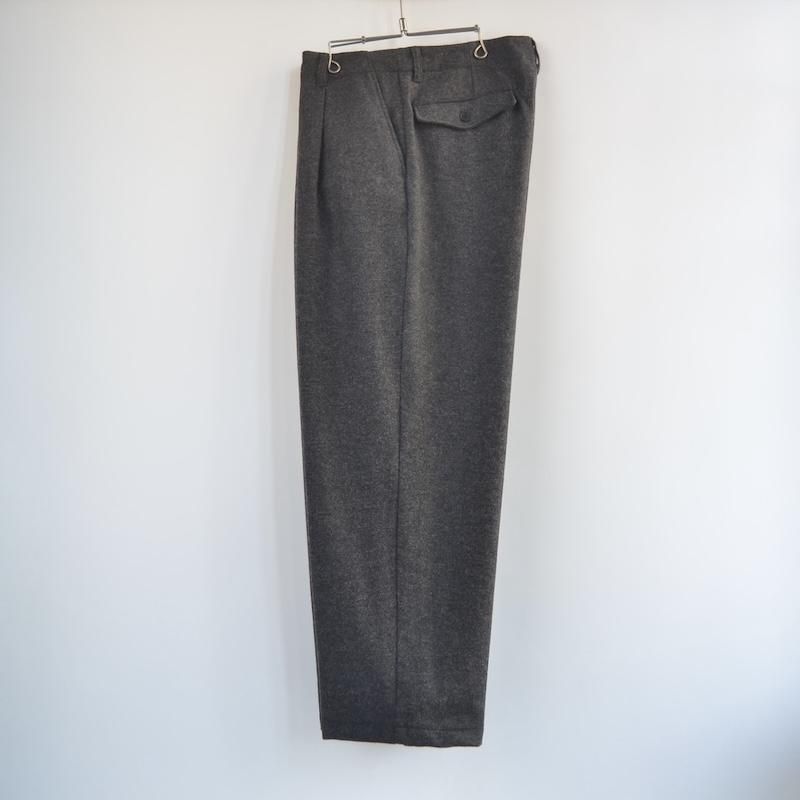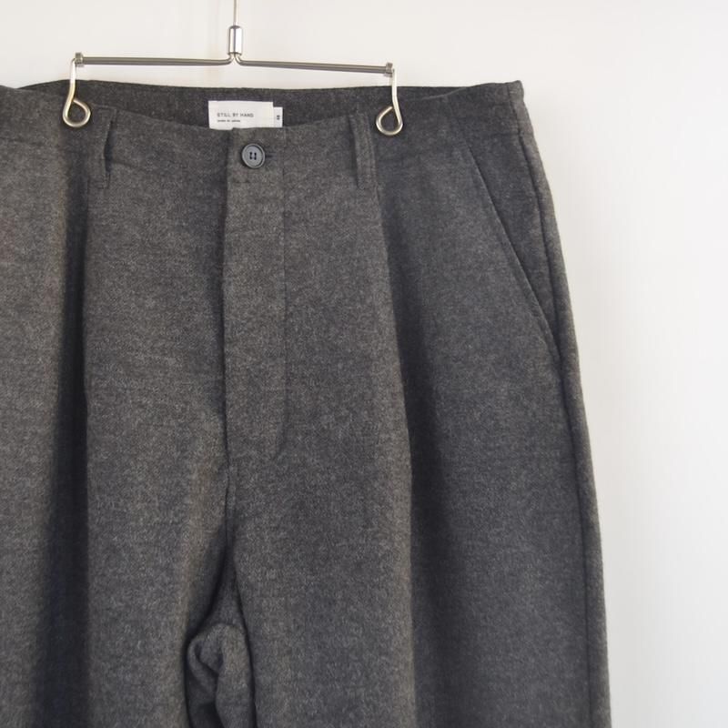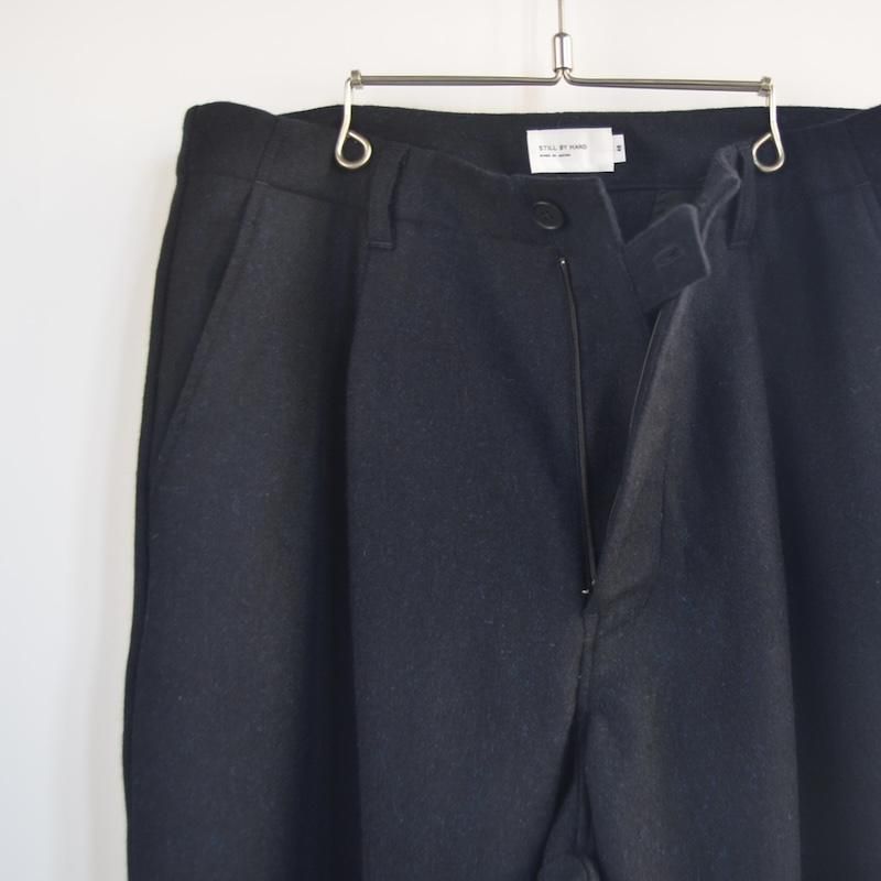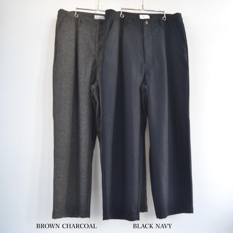 シルエットはワイドでテーパードを緩やかにし、ストンとしたラインとなります。