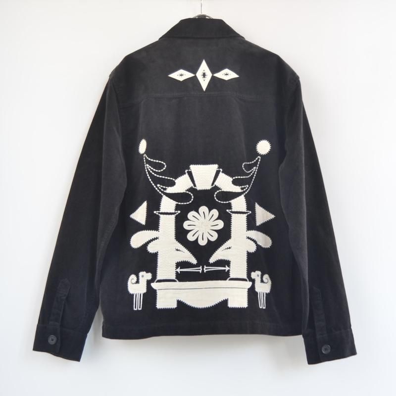 胸ポケットと背中に民族柄のような刺繍の入ったコーディロイシャツジャケット。