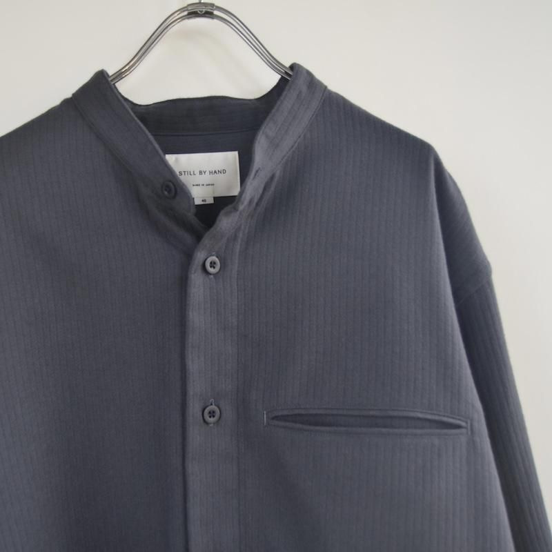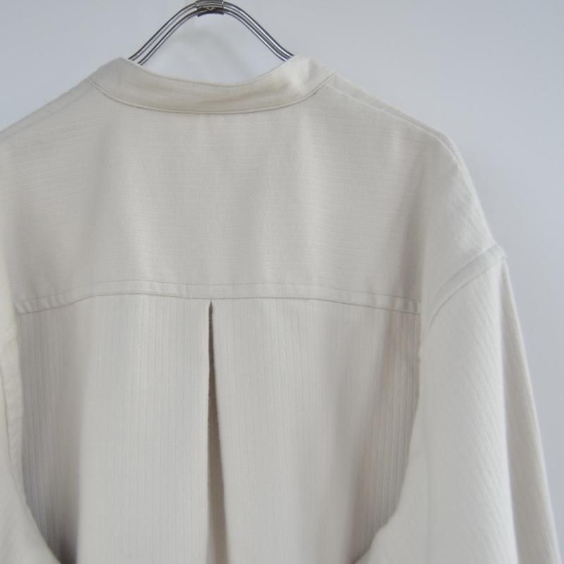 厚手のしっかりしたコットンピケ素材を使用したバンドカラーシャツ。