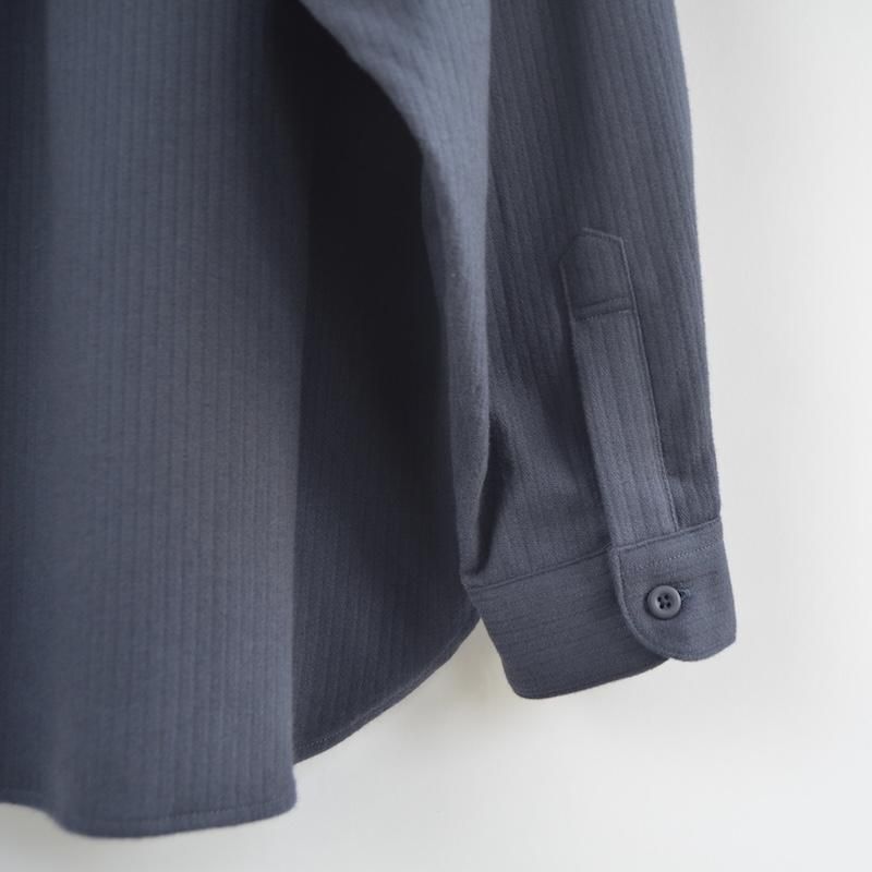 起毛感もあり素材の特徴で縦畝のある表情のためキャラクターのありシャツに仕上がりました。