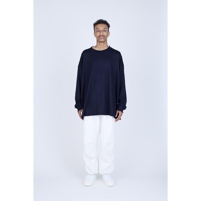 生地の持つ自然なドレープを活かした、余白のあるボックスシルエットが特徴のウールTシャツ。
