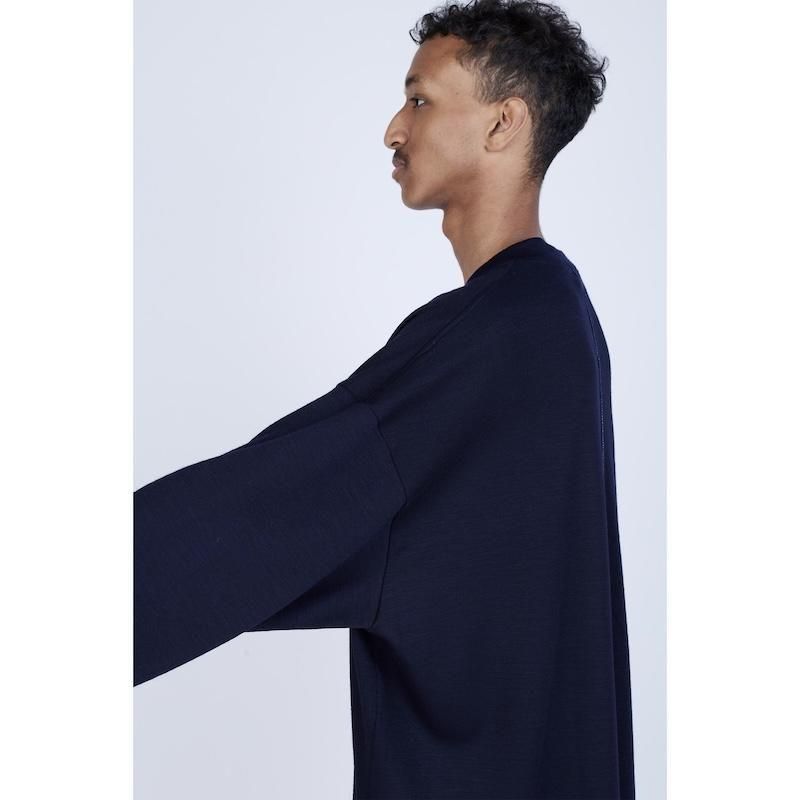 The material used is 100% wool smooth jersey, carefully knitted in Bishu, one of Japan's leading textile production areas. It is a luxurious fabric combining a lustrous, smooth texture with a clean appearance, elegant drape, and appropriate firmness.