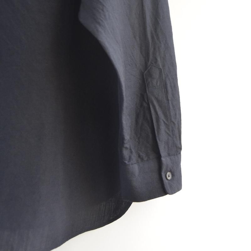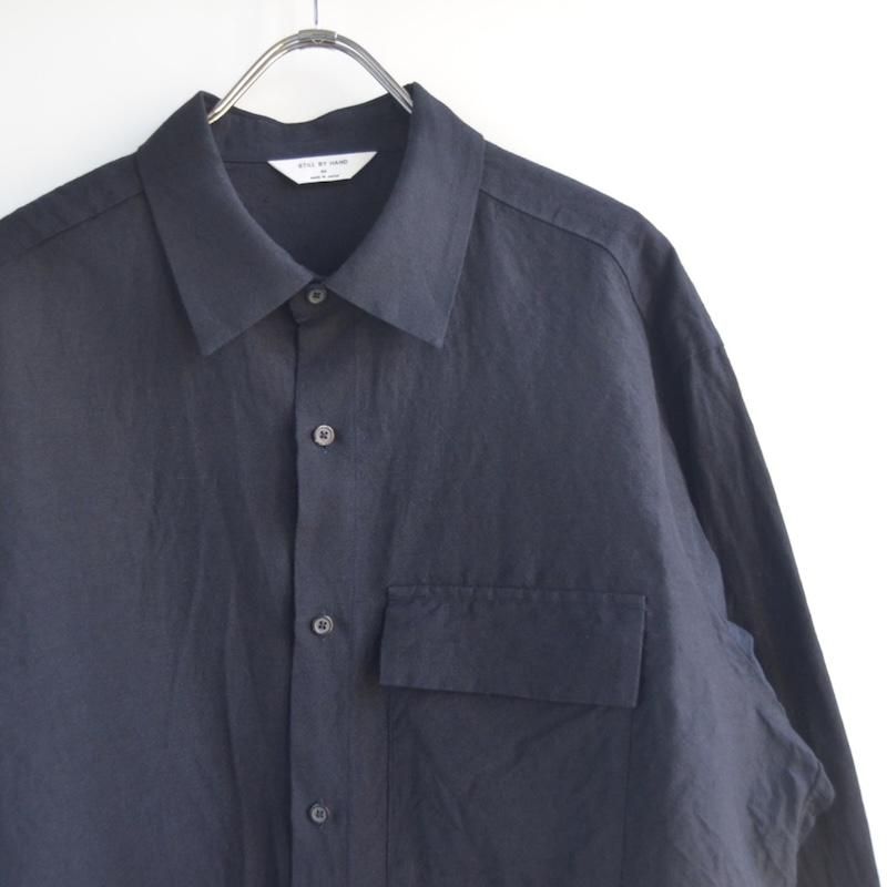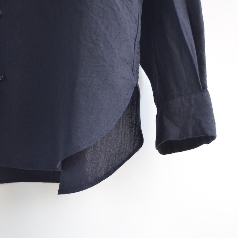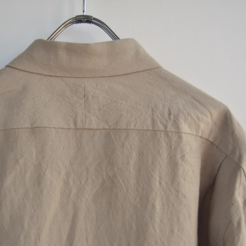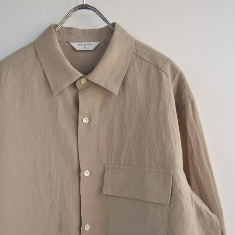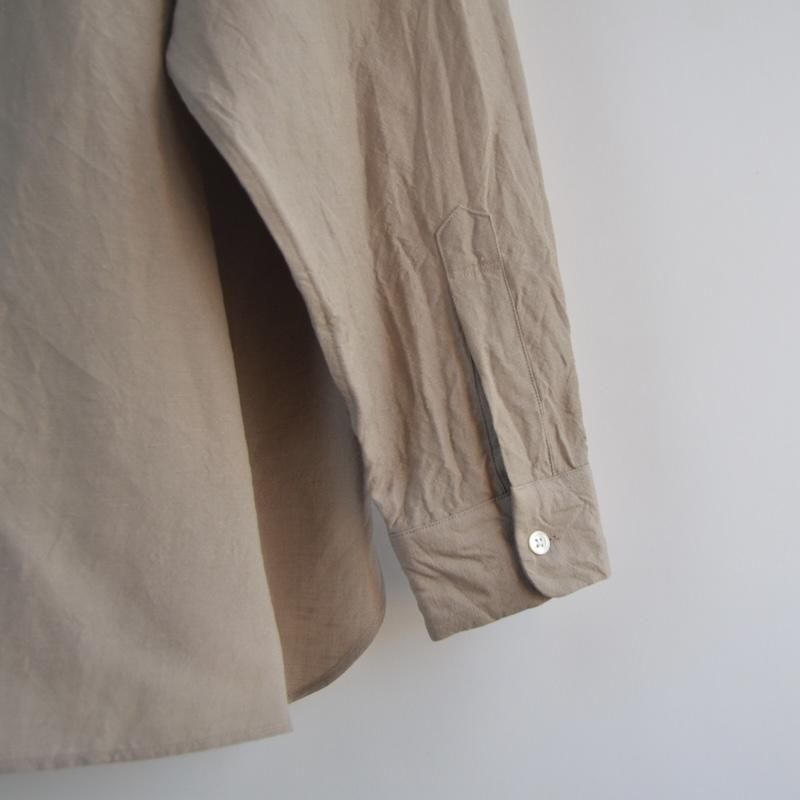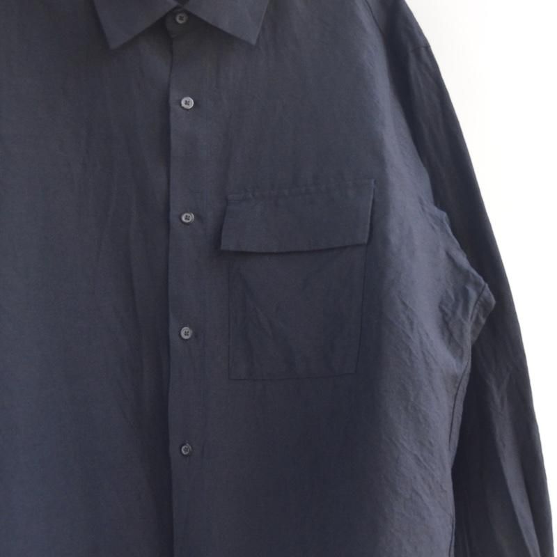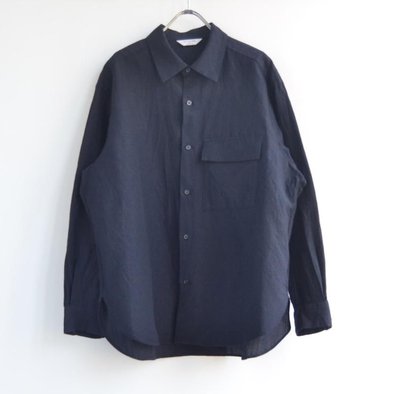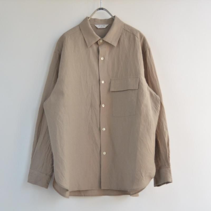 This regular-collar shirt, featuring flap pockets, is crafted from a wool-linen blend. While it retains the characteristic slubs of linen, the use of worsted wool yarn ensures a refined luster and minimal wrinkling. It is a versatile piece that looks polished on its own or worn as a light outer layer once the weather warms up.